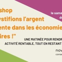 Bonjour à vous toutes et tous, Inscription ouverte pour l'atelier formation "Démystifions l'argent & la vente dans les économies solidaires". Lien pour s'inscrire : https://novations.ch/atelier-commerce-et-vente-ethique/